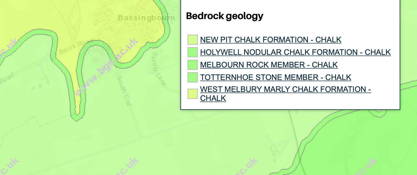 It was really only the name which made me think the Fulbourne must be a bourne. It is clearly ephemeral as the images on google maps show a dry stream bed, but the surrounding geology is definitely chalk. It is a tributary of the Quy water and rises in Fulbourne just to the east of Cambridge.
