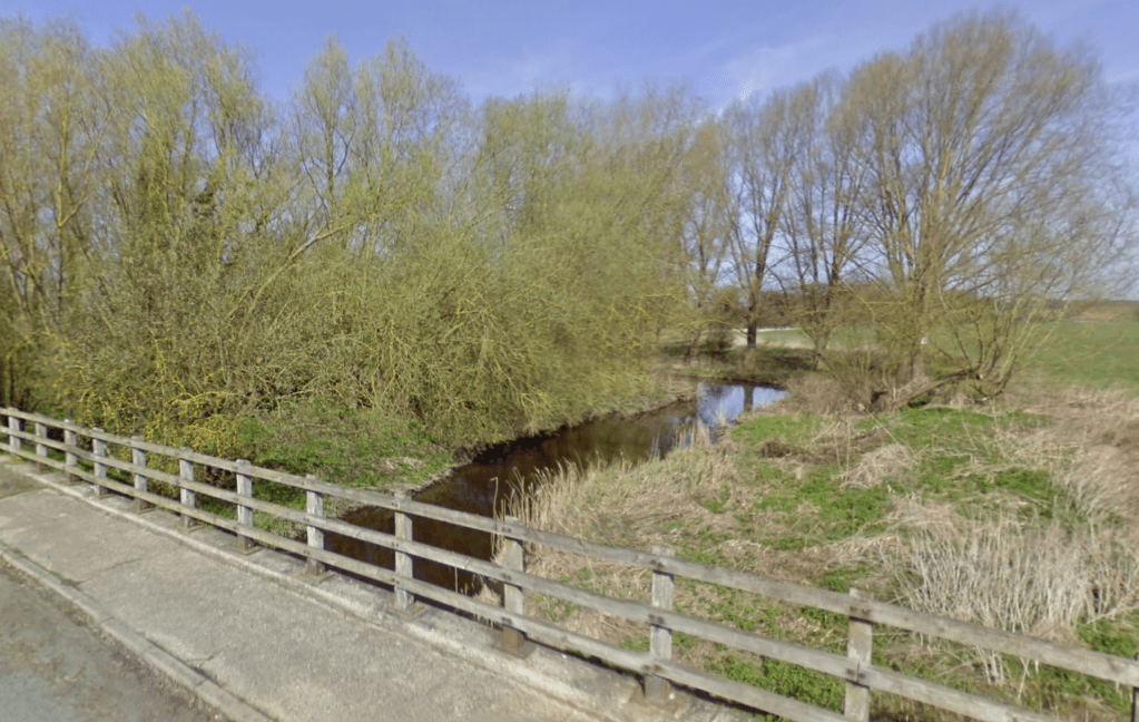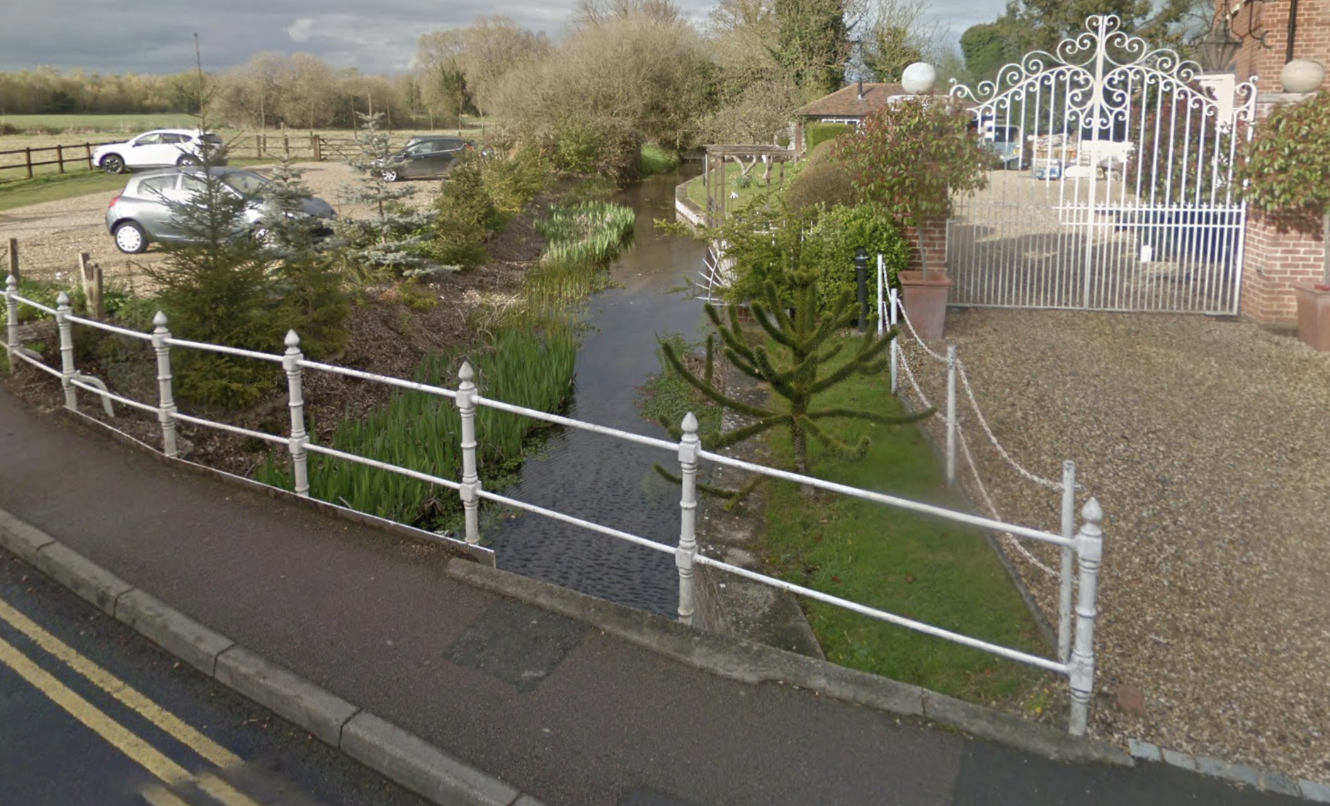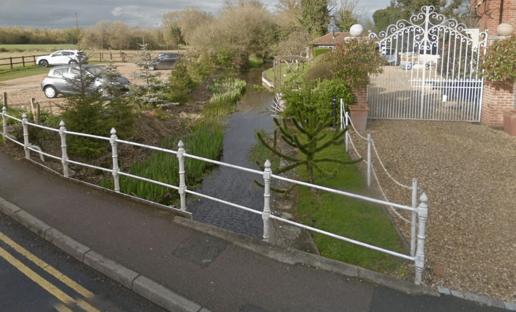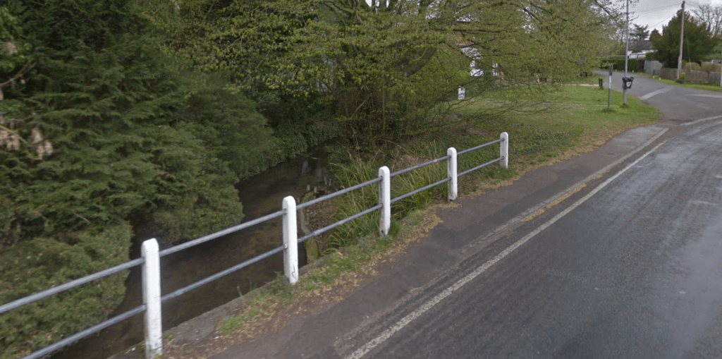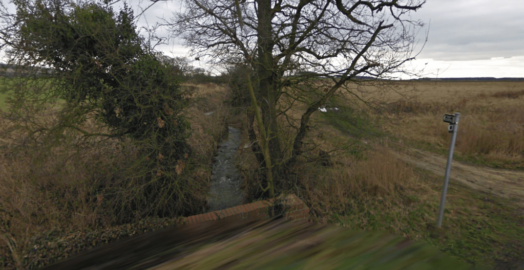 So the Bassingbourne is a tributary of the River Rhee (which is easy to confuse with the Cam because both the Cam and the Rhee seem to have interchangeable names on the map: even on the latest incarnation of Apple’s “Maps” the Rhee which rises at Ashwell Springs suddenly becomes the Cam after it flows under the Northfield Road). Anyway, to the west of Bassingbourne is a street called, tellingly, Brook Road and this is the river flowing under it: