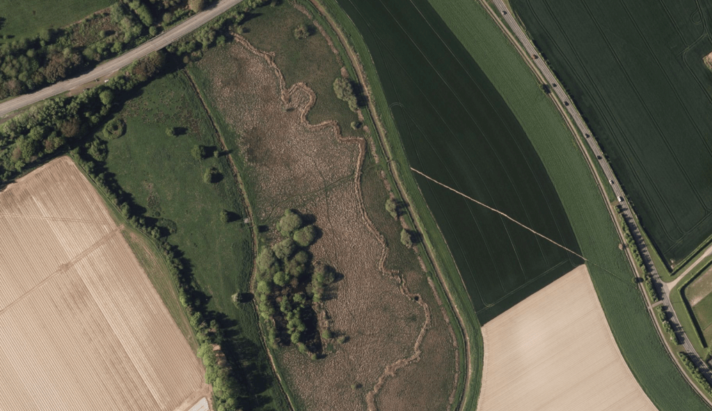 The Gowthorpe Beck is a tricky one because of that Yorkshire habit of naming rivers by the parish: it’s also called Garrowby, Awnhams and Fangfoss! It’s also tiny and probably ephemeral and it’s only chalky at the foot of the downs. It’s just north of the A166 near Bishop’s Wilton in Yorkshire. This is a picture of it from the air: