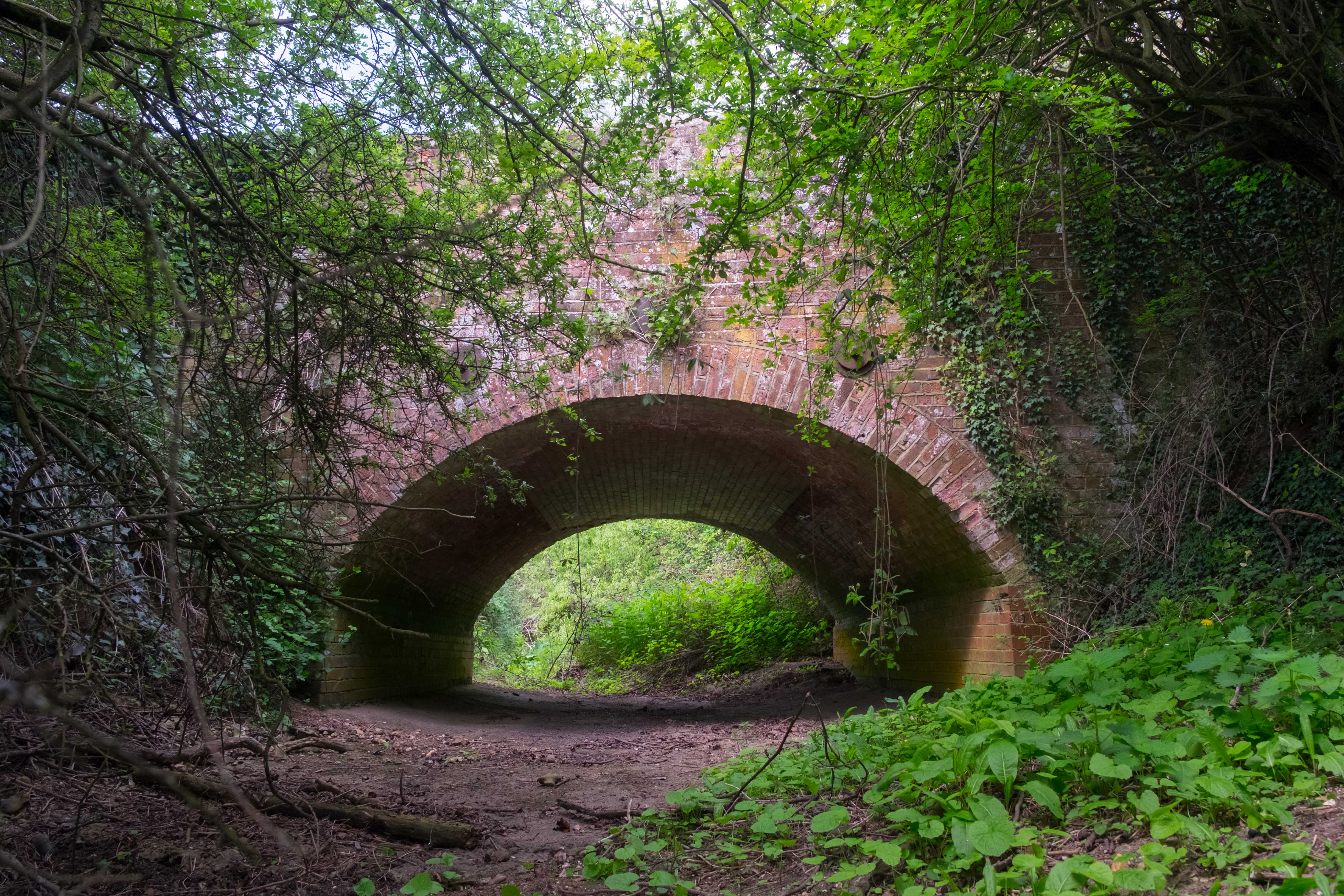 The first is where a footpath crosses the stream and although immediately below the A414, it is a long walk from any road. It would have taken a determined fly-tipper. I also noticed a road run-off discharge point there, under the flyover and draining the A414 above. I was there after a heavy downpour and although this was running, it was only a trickle. The part of the A414 that it drains is a deep puddle, and the drain is blocked with leaves. There was no pink residue there and anyway it would have been almost impossible to stop on the dual carriageway to discharge anything.